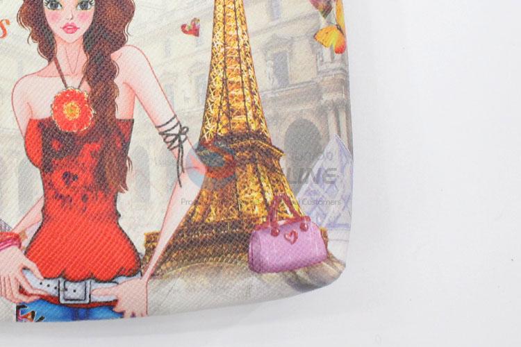 Women Fashion Girl and Buildings Printed Short Wallets Small Wallet Roomy Purse