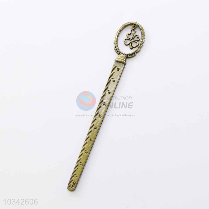 Zinc Alloy Ruler Bookmark with Clover Charm