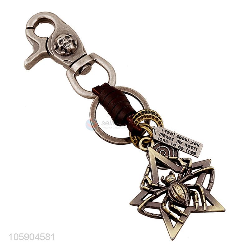 Low price weave leather key chain with retro spider charms