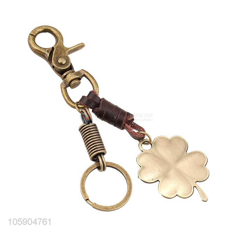 Delicate personalized alloy pendant retro four-leaf clover leather key chain