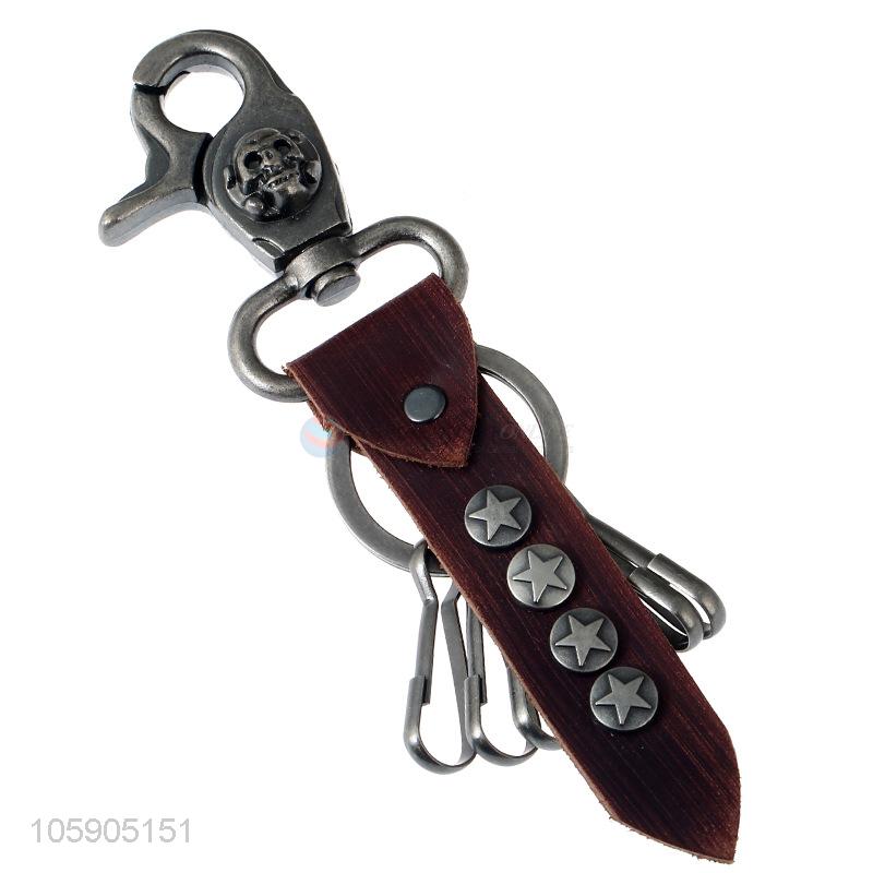 ODM factory men rivets leather key chain with hooks