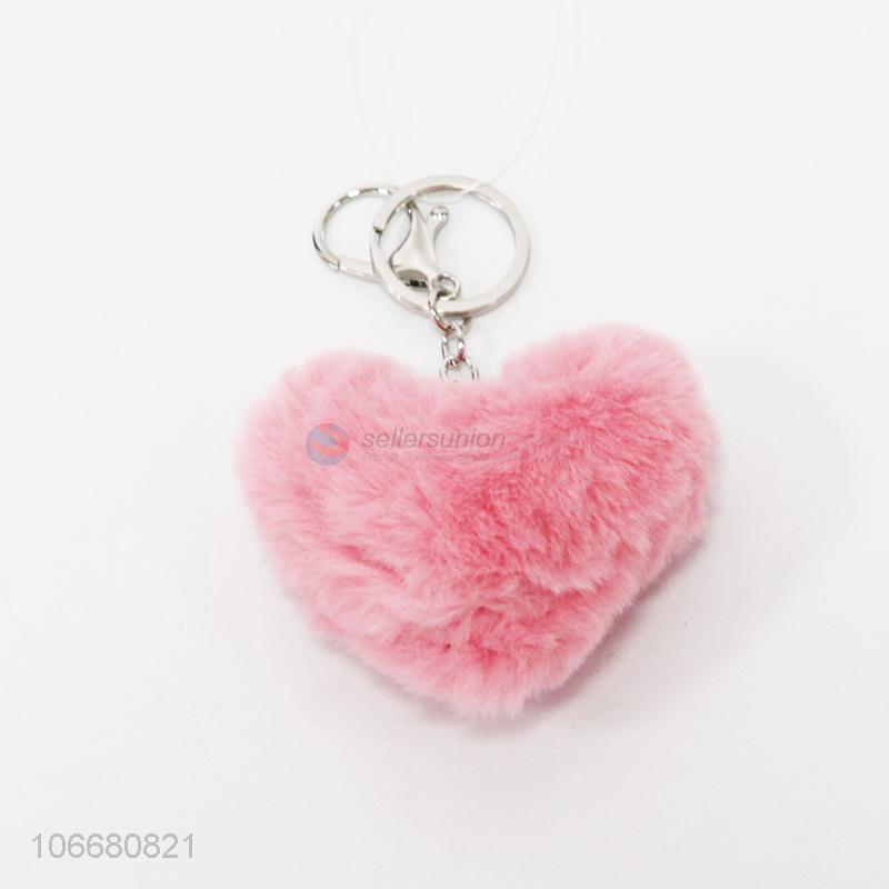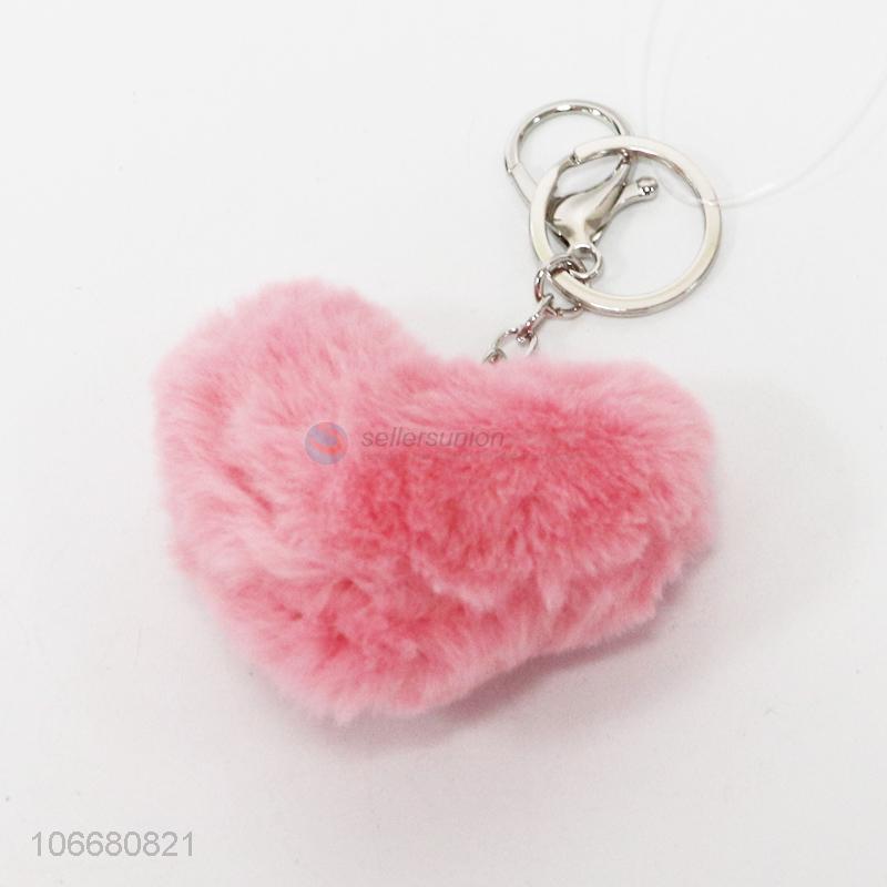Fashion Heart Shape Pompon Key Ring Pendant