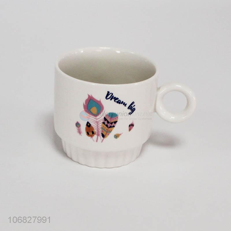Latest arrival colorful feather pattern ceramic cups