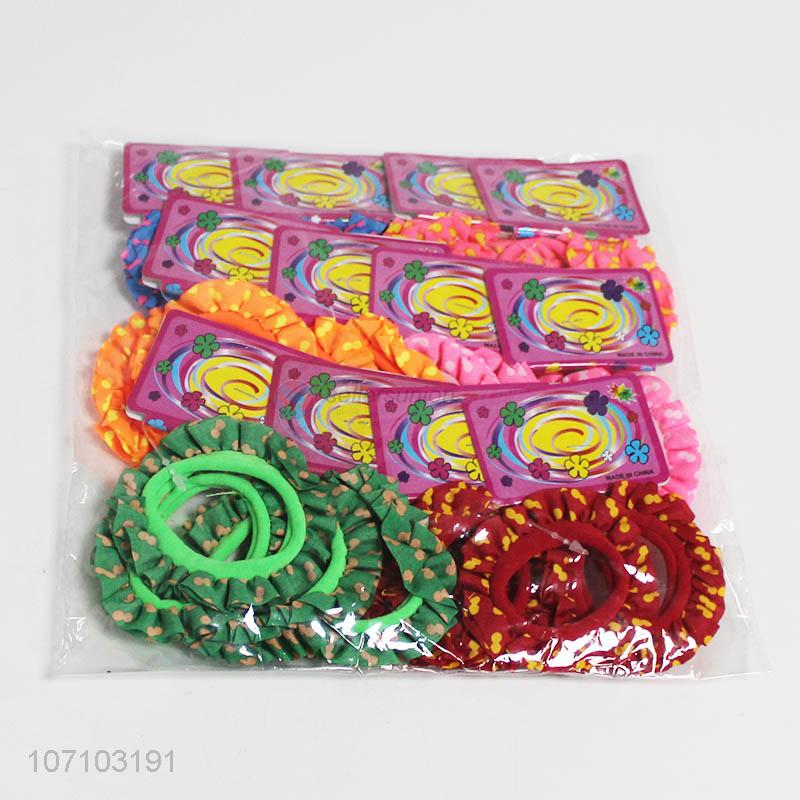 Custom 12 cards colorful polyester hair rings hair ties wholesale