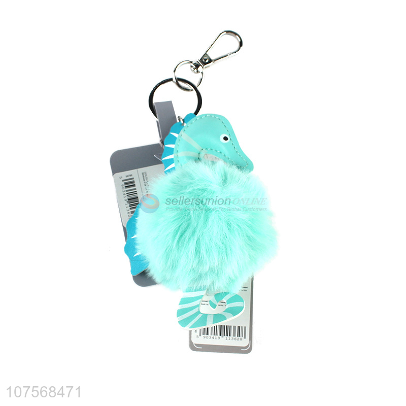 Low price fashion sea horse key chains plush key chain fur ball pendants