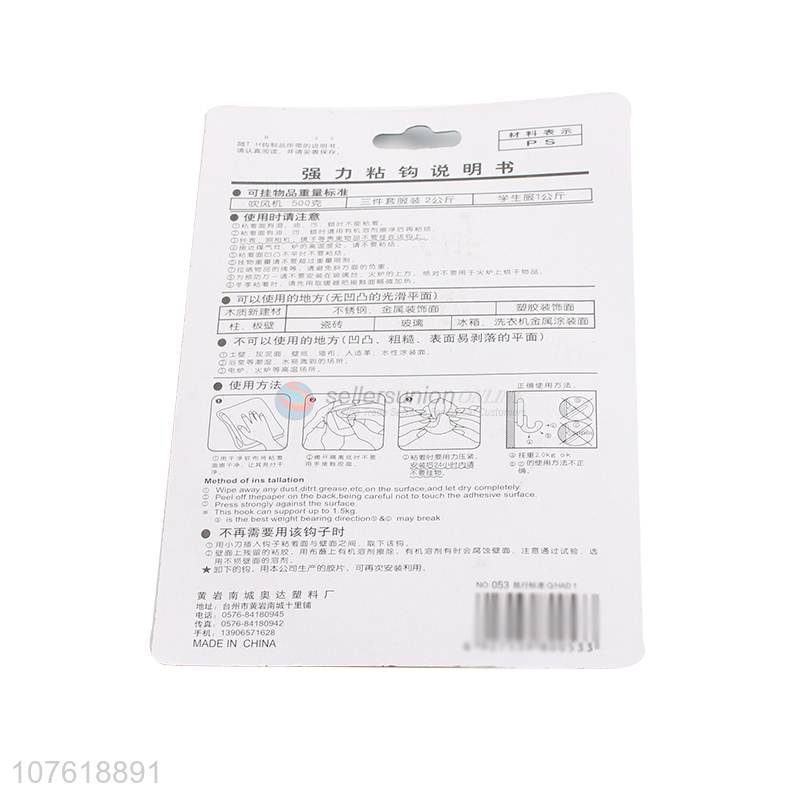 Self adhesive no residuce heavy duty nail free strong adhesive wall hook