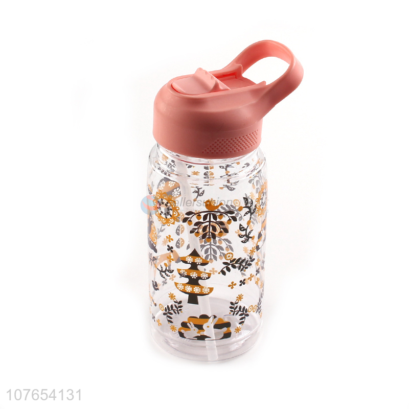 Hot selling fashionable printing drinking bottle water bottle with straw