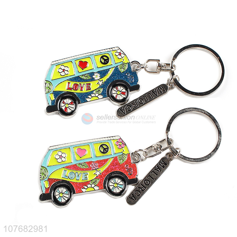 Hot selling cartoon bus key chain metal keychain key ring