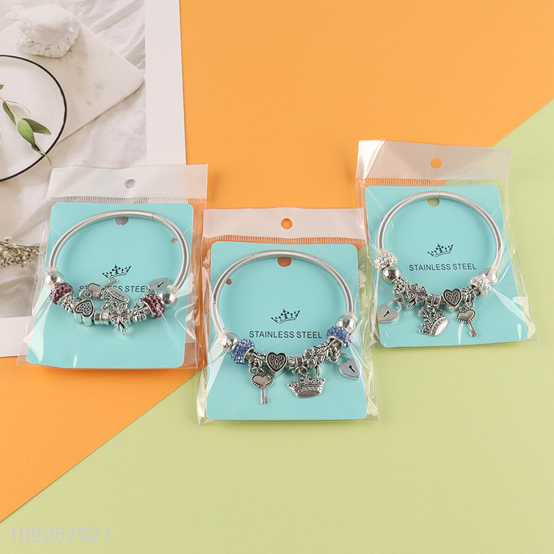 Factory Price Charm Bracelet Silver Stainless Steel Bangle for Women Girls