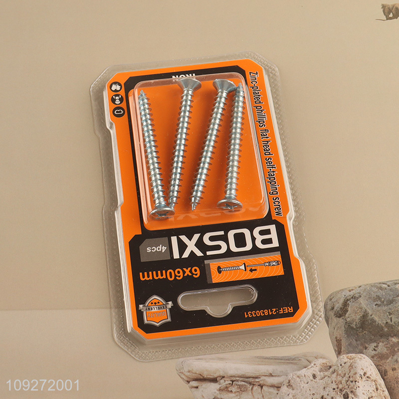 Good quality 6*60mm zinc-plated phillips flat head self-tapping screws