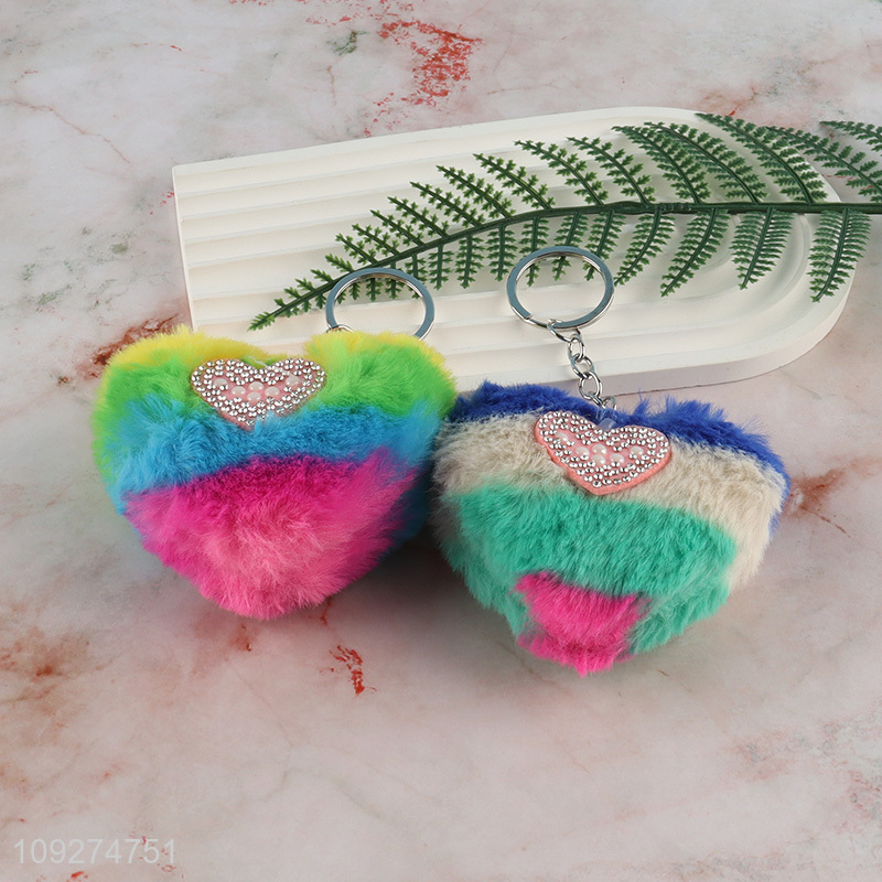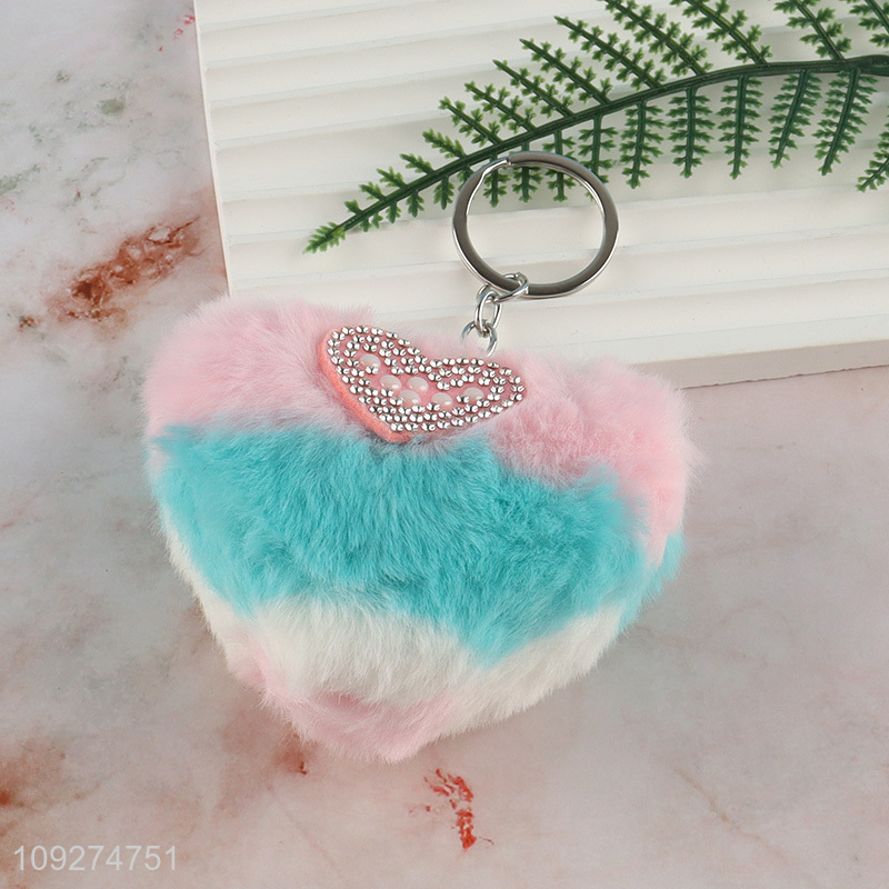 Popular products heart shape plush keychain key rings